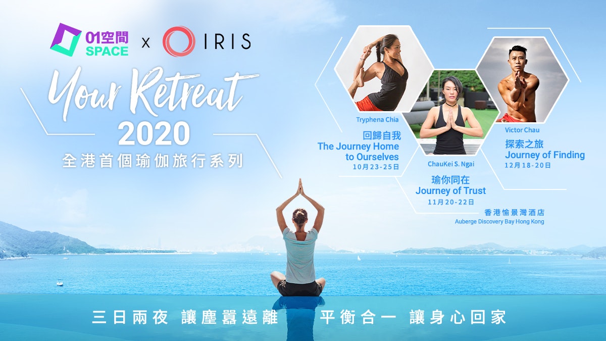 「01空間」與「IRIS」將於 2020 年 10 至 12 月合辦 - 全港首個瑜伽旅行系列之「01空間 X IRIS:Your Retreat 2020」。活動將於充滿異國風情的渡假小島愉景灣舉行,由三位星級專業導師Tryphena Chia、魏秋琪(ChauKei Ngai)、Victor Chau,分別帶領參加者以瑜伽健康運動為起點、平衡身心靈的三日兩夜旅程;為香港人帶來今年最後的出走機會,尋回原始最初,塑造屬於自己的生活空間。